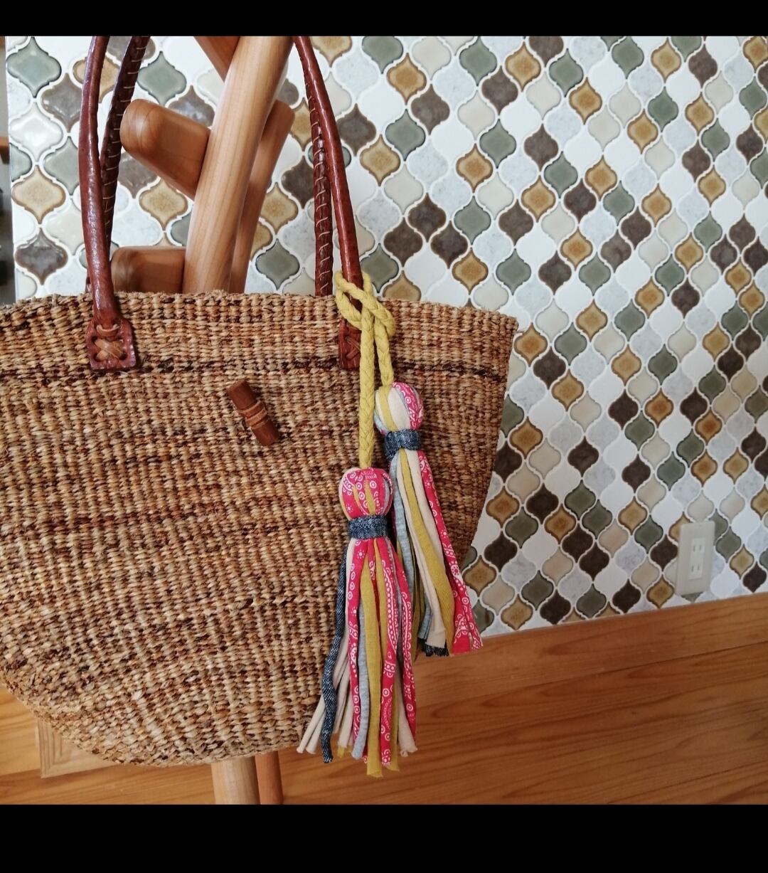 Tシャツヤーンを使用したタッセルチャームです。